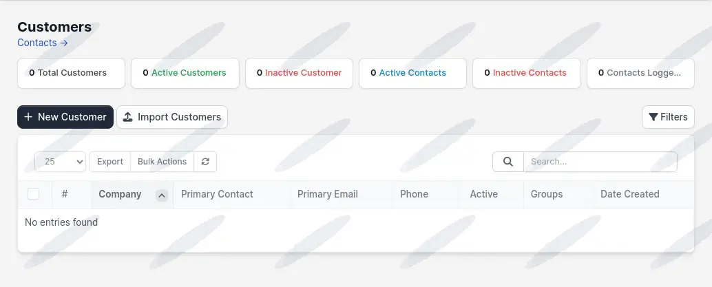 Manage your client base effectively with the Customers module. This section allows for the creation of new customer profiles, importing existing customer data, and managing contacts. It provides a clear overview of all customer-related activities, fostering better client relationships.